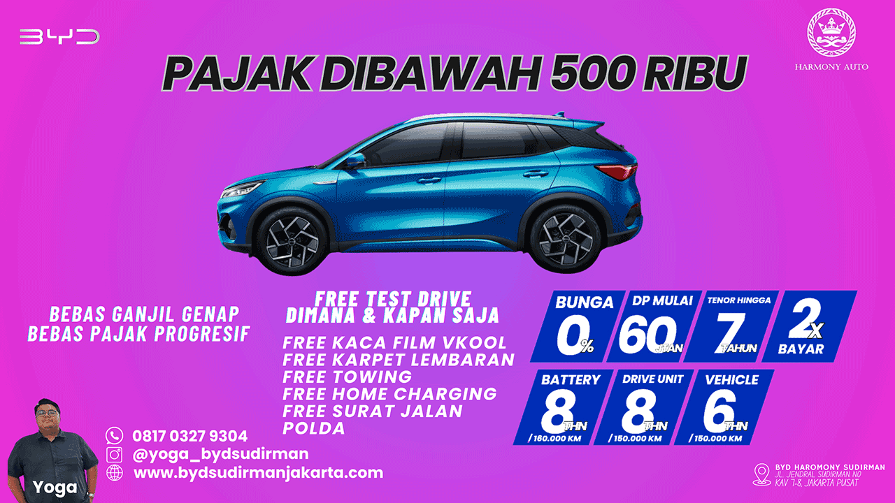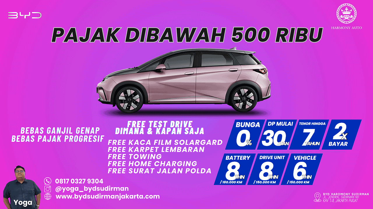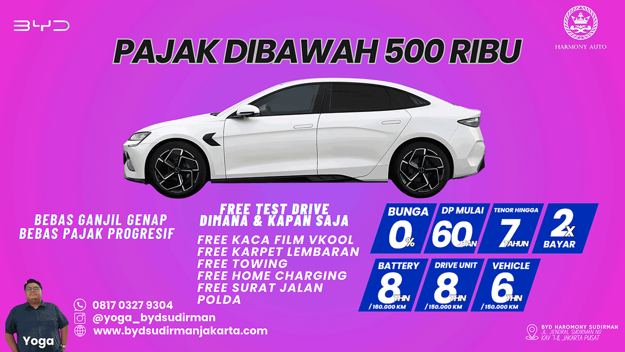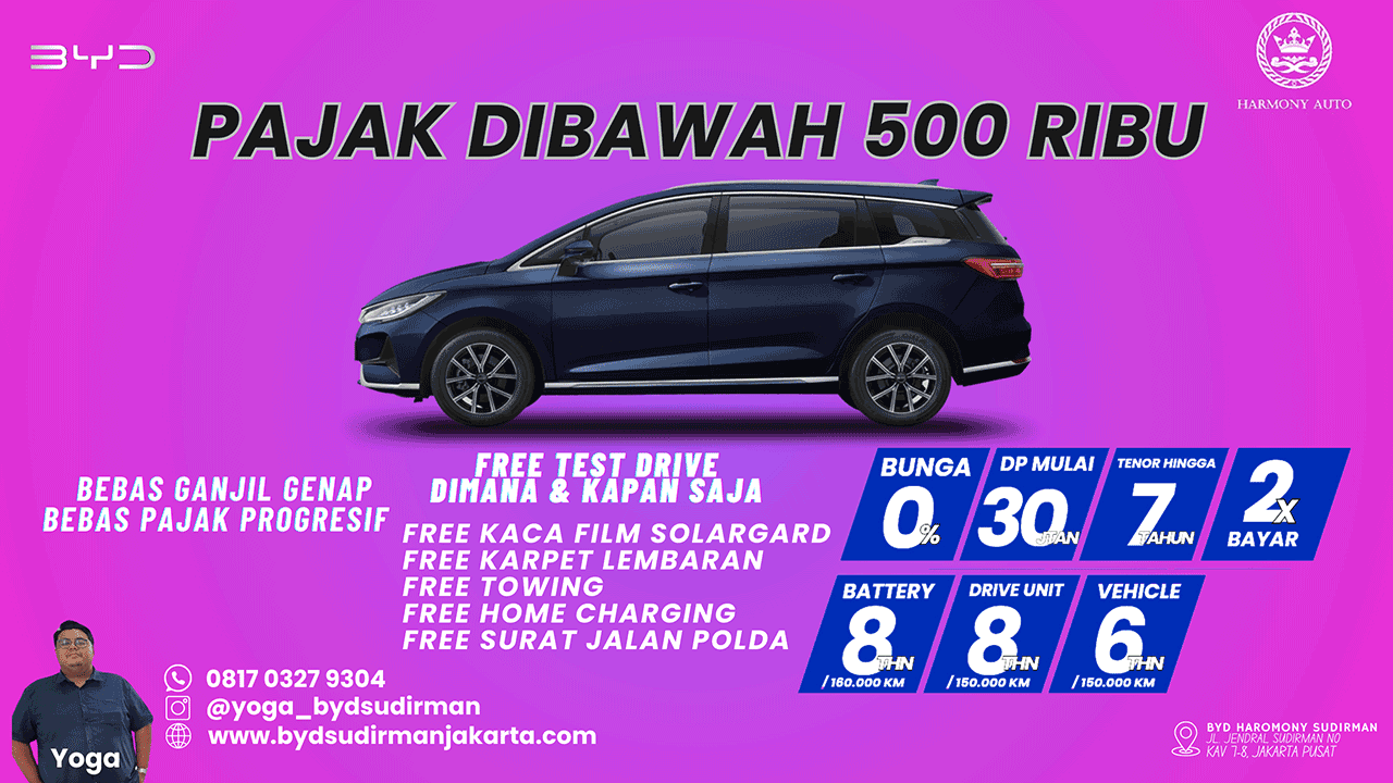 BYD SUDIRMAN JAKARTA - Dealer Resmi BYD Jakarta, menawarkan harga promo BYD Jakarta menarik. Saya siap membantu konsumen memiliki Mobil BYD Idaman dengan proses mudah, cepat, tanpa ada biaya tambahan.